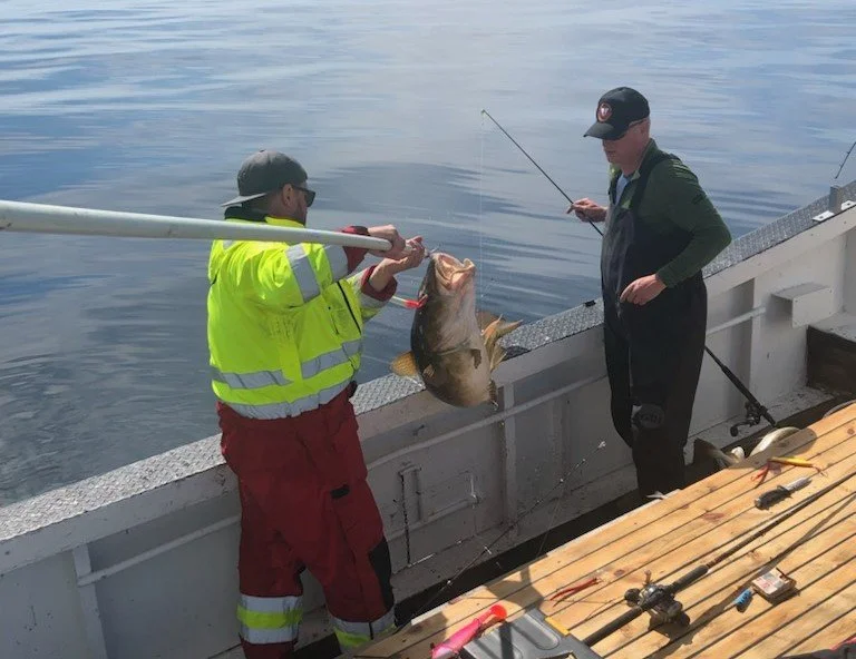 Alle tar med fiskestang (havfiskestang), men vi kan også leie ut